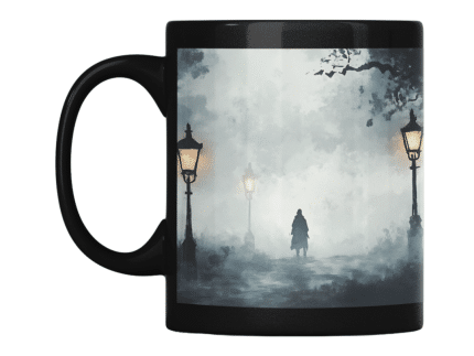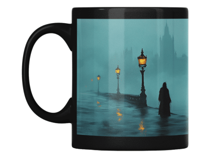 El precio original era: 10,99 €.9,90 €El precio actual es: 9,90 €. IVA Incl.Taza Negra Pato Blue Puente en la Niebla