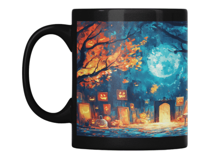 El precio original era: 10,99 €.9,90 €El precio actual es: 9,90 €. IVA Incl.Taza Negra Pato Blue Portal de Calabazas Halloween