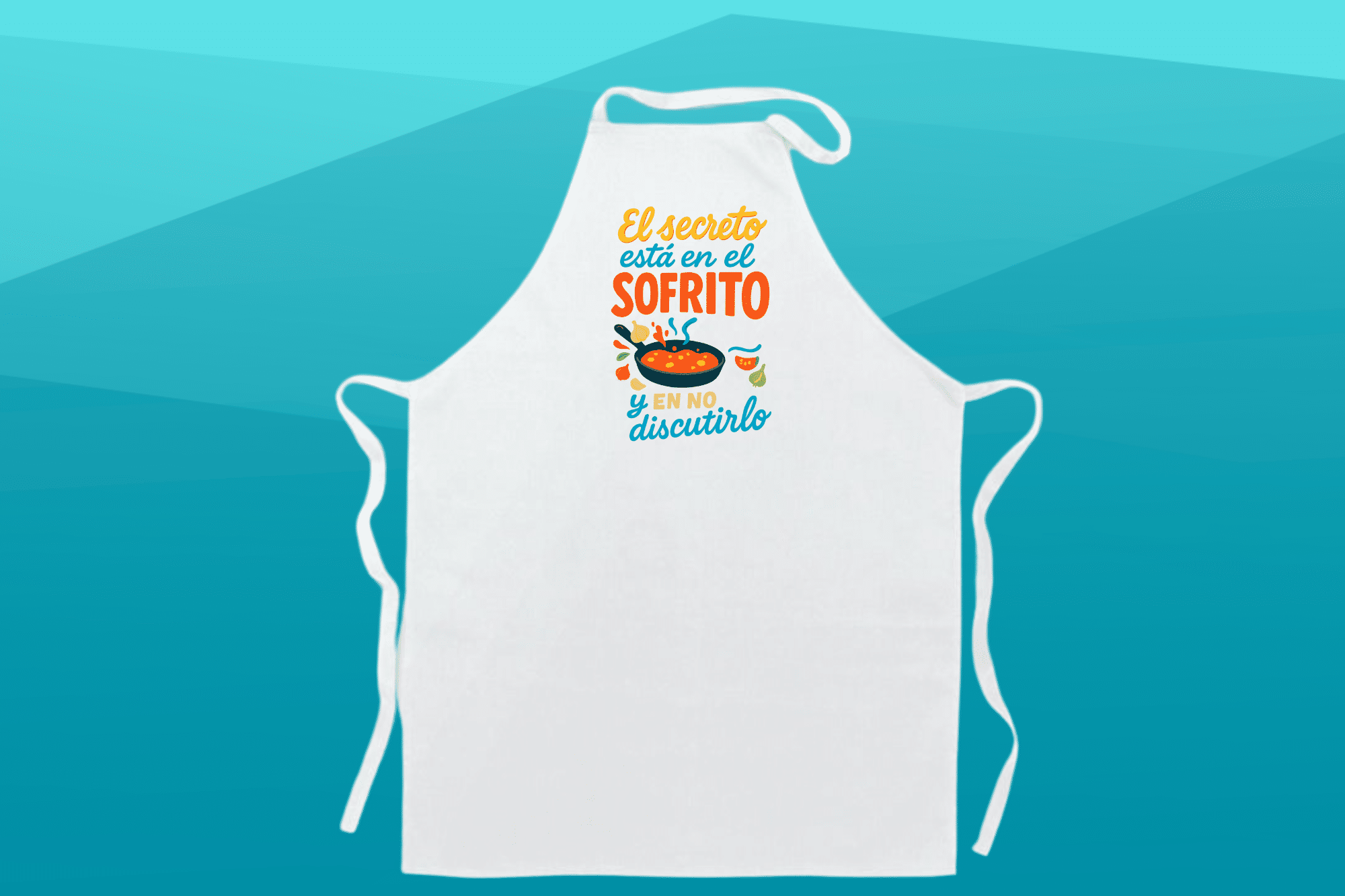 Delantal con mensaje «Aquí huele a sofrito». Confeccionado en tela resistente, cómodo y práctico para usar en cocina o barbacoa. Diseño original que saca sonrisas. Ideal para regalar o darte un capricho.