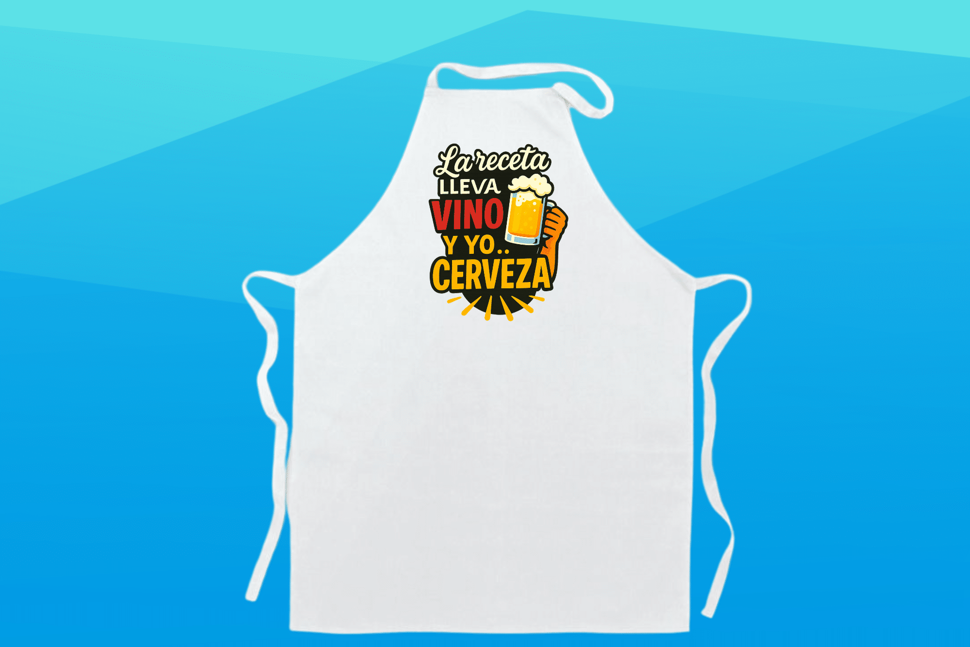 Ideal para chefs que saben que un chorrito de vino lo arregla todo. Delantal con diseño alegre y mensaje claro.
