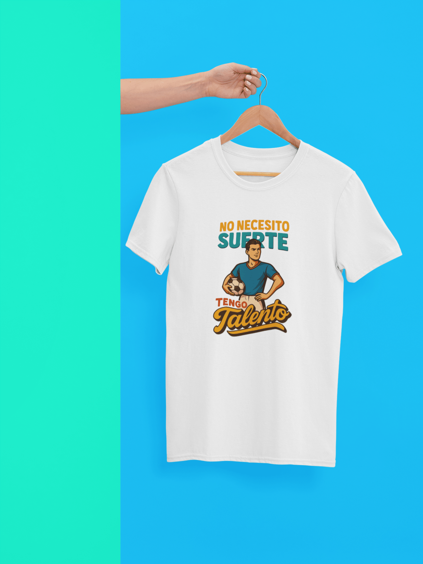 La camiseta con el mensaje ‘No necesito suerte, tengo talento (fútbol)’ es perfecta para quienes viven a su ritmo. Algodón suave, corte unisex y mensaje directo. Ideal para regalar(te) y marcar estilo sin complicarte. Disponible en varias tallas. ¡Exprésate sin decir una palabra!