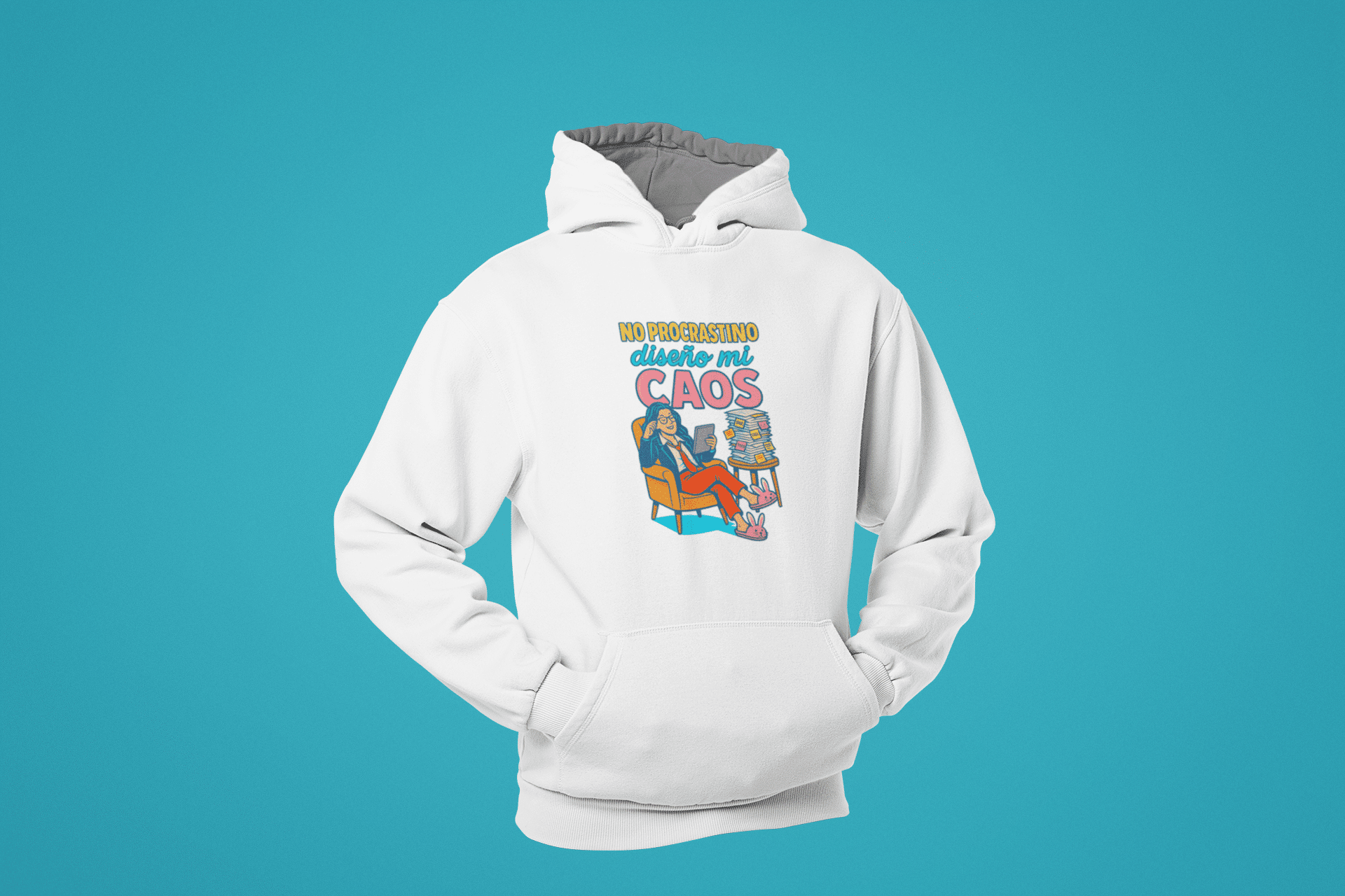 Sudadera de algodón suave con capucha y mensaje potente: «NO PROCRASTINO diseño mi CAOS (mujer)». Corte unisex, cómoda y perfecta para quienes no se callan nada. Ideal para destacar tu personalidad con estilo.