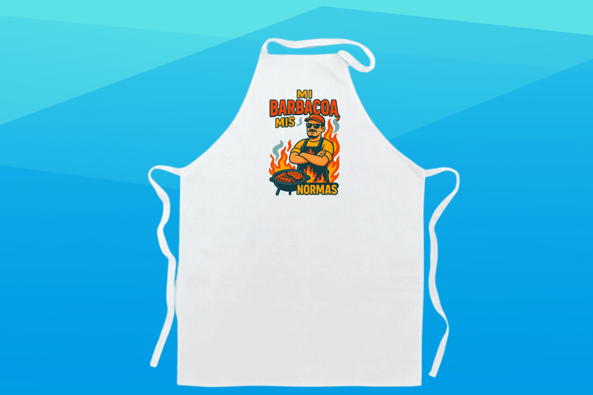 Delantal con mensaje «Normas de la barbacoa». Confeccionado en tela resistente, cómodo y práctico para usar en cocina o barbacoa. Diseño original que saca sonrisas. Ideal para regalar o darte un capricho.