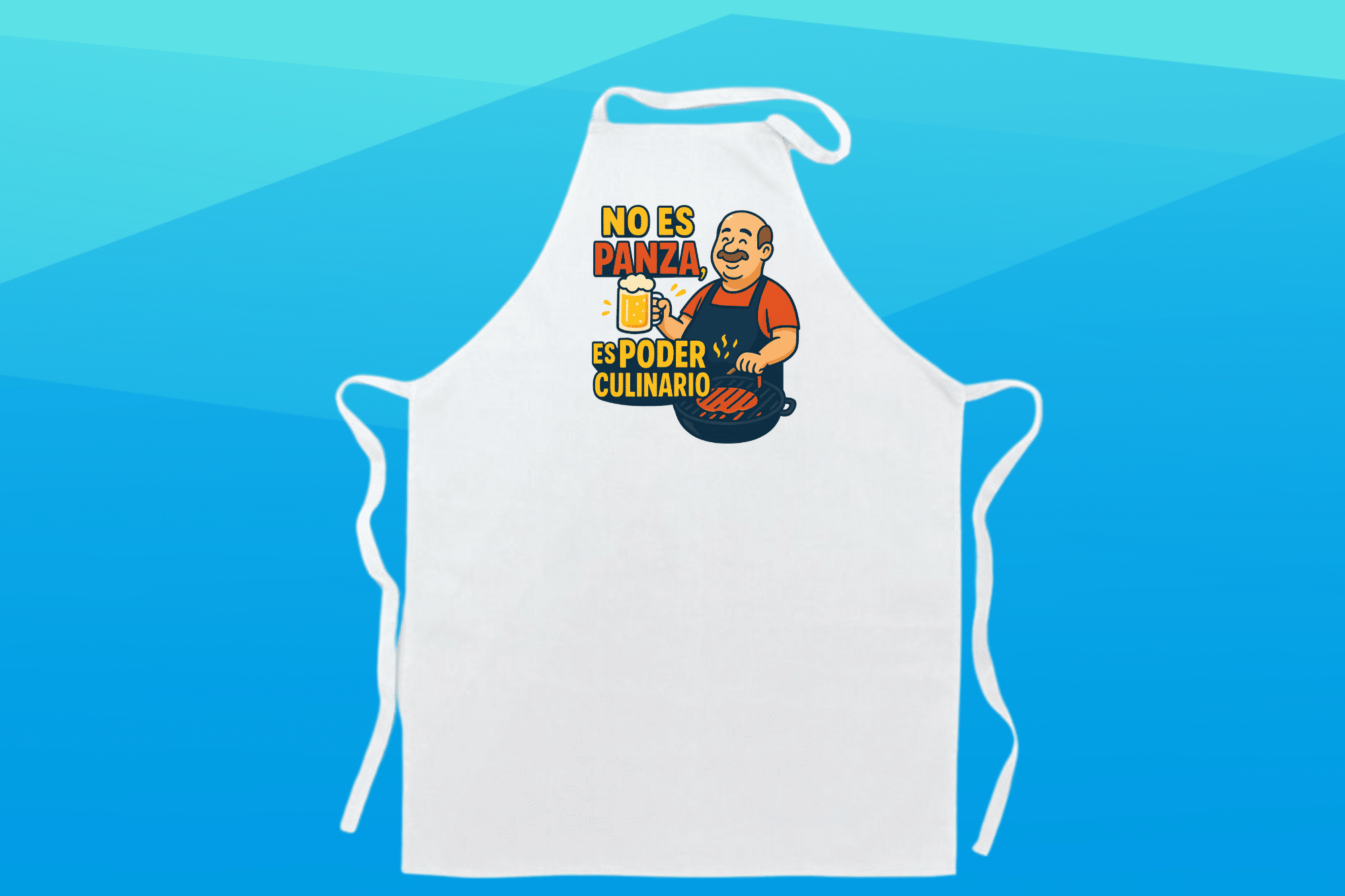 Delantal con mensaje «Panza oficial del chef». Confeccionado en tela resistente, cómodo y práctico para usar en cocina o barbacoa. Diseño original que saca sonrisas. Ideal para regalar o darte un capricho.