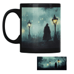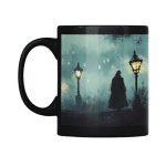 La Taza Negra Pato Blue Sombras de Londres captura la esencia de una noche envuelta en misterio. Entre luces tenues, edificios difuminados y el eco de pasos en la niebla, se dibuja una silueta que parece salida de una historia de intriga.