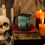 El diseño juega con tonos fríos y una atmósfera cinematográfica, perfecta para quienes disfrutan lo clásico, lo enigmático y lo estéticamente oscuro. Ideal para acompañar un café mientras cae la lluvia o mientras planeas tu próximo proyecto con calma y carácter.